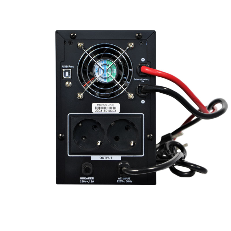 ДБЖ підтримує роботу із зовнішньою акумуляторною батареєю 12 V, оснащений дисплеєм та функцією холодного старту.