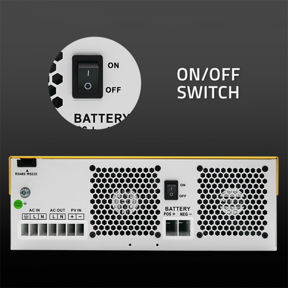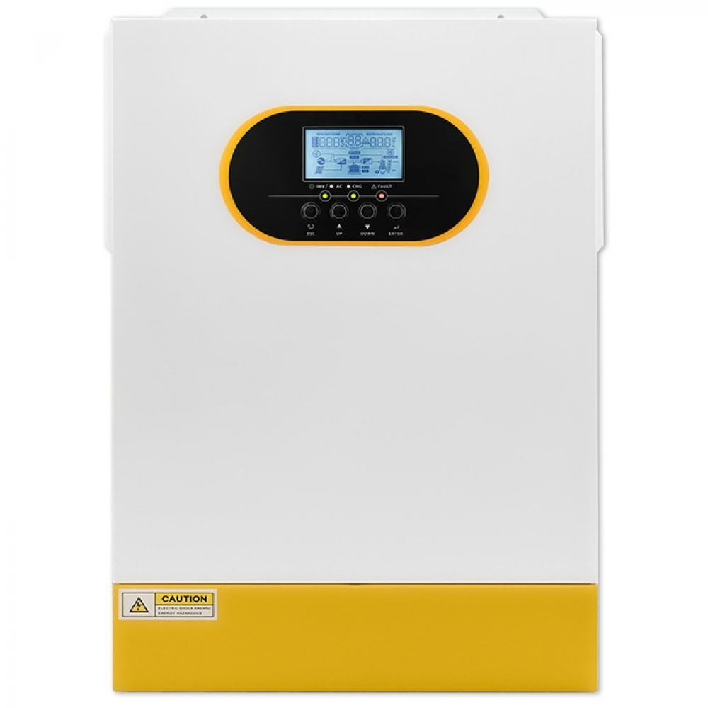 Гібридний інвертор поєднує в собі функції інвертора, зарядного пристрою та сонячного MPPT-контролера, що дозволяє ефективно працювати з мережею, сонячними панелями та акумуляторами. Він забезпечує стабільну подачу електроенергії з чистою синусоїдою, що робить його повністю сумісним з чутливою електронікою — котлами, холодильниками, комп’ютерами, насосами та телекомунікаційним обладнанням.